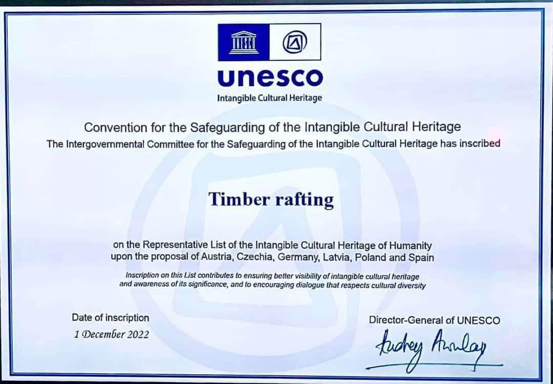 Timber rafting on the List of the Intangible Cultural Heritage of Humanity upon the proposal of Austria, Czechia, Germany, Latvia, Poland and Spain.